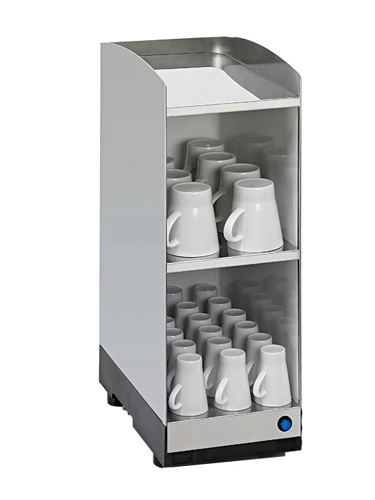 Keep your cups warm with this attractive and effective add-on unit, a perfect match for any Carimali machine. Three levels of cup holder, the bottom two are heated. Classic stainless steel construction, available in Steel Gray or White.