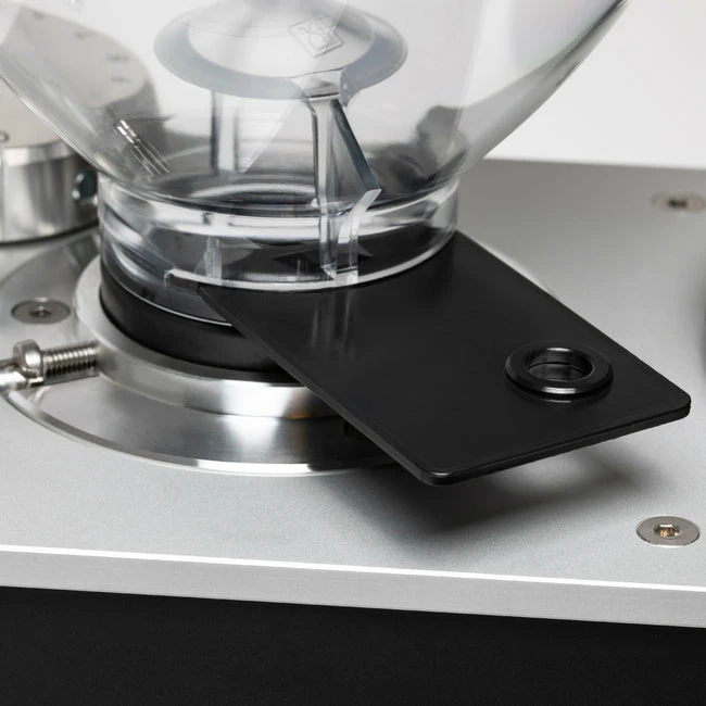 A small touchscreen display keeps everything neat and simple with the option to choose between a single dose, double dose, or manual dosing. Visually, the display has a clean design and all UI elements are arranged for easy reading. The pause feature lets you pause your grind or cancel it altogether with just a push of a button. Just leave the portafilter in the holder, press your desired amount, and watch the Faustino dispense fluffy grounds from the chute.