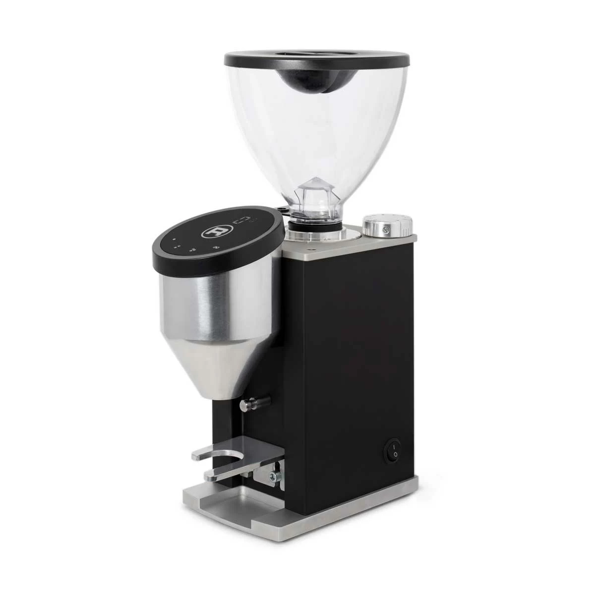 The Rocket Espresso Faustino is a fashionably small grinder with simple functionality that won’t get in the way of grinding for espresso. This is one of the smallest grinders we’ve had the opportunity to test and yet it has the performance a good espresso deserves. The star feature boasted by the Faustino is its stepless micrometric adjustments, giving it nearly unlimited grind settings to play with. The 50 mm steel burrs can be adjusted with the micrometric adjustment knob near the hopper which moves only the bottom burr when adjusting the grind setting. In short, this means that you won’t have to readjust your grind setting after cleaning the burrs and grinding chamber. Plus, the Rocket Faustino is equipped with anti-vibration technology that allows it to grind quietly (very quietly). Even though it’s smaller than Rocket’s Macinatore Fausto grinder, the Faustino has just as large of a hopper that can hold up to 1.5 pounds of beans.