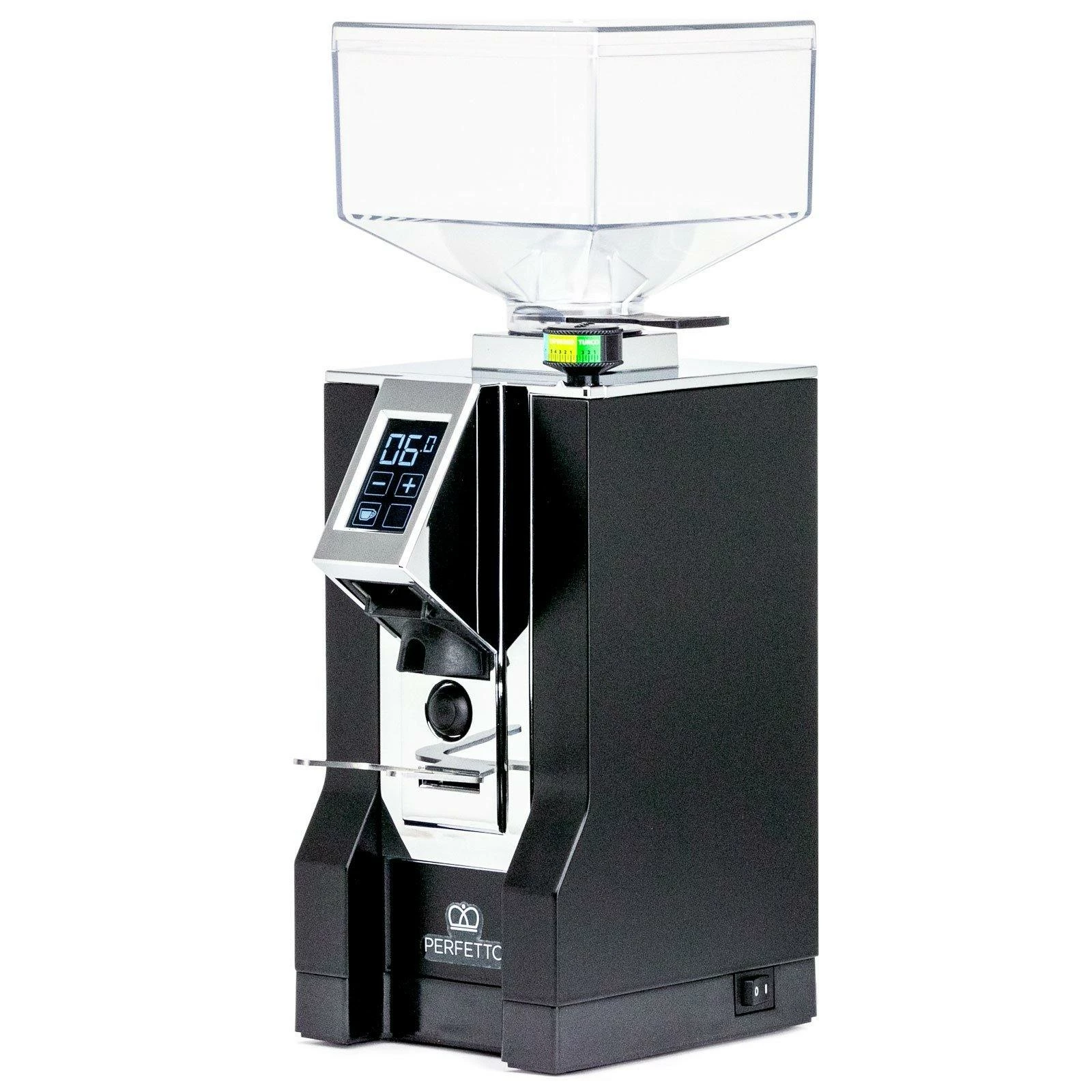 Introducing the Eureka Mignon Perfetto grinder. With sound insulated technology this grinder is as quiet as it gets. The combination of it’s silent performance mixed with it’s simplicity really sets this grinder apart. Easily adjust the grind with it’s unique easy setting dial at a simple twist. With two timed settings for a single or double shot this grinder makes it simple to switch back in forth between the two on it’s beautifully simplistic touch screen. With a host of Eureka’s integral innovations, like a grind-saving lower burr adjust, programmable dosing, their ACE anti-clumping system, and an anti-static finish along its grind path. The Eureka Perfetto brings the quality you desire.