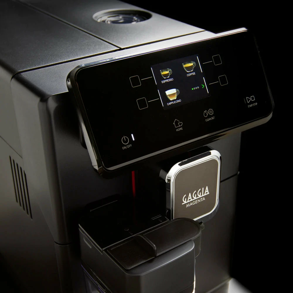 The Magenta Prestige from Gaggia is a sleek and modern super-automatic espresso machine. Compact but powerful, it includes a one-touch milk carafe, a colorful display, and capacitive touch controls. With the Magenta Prestige, it is easier than ever to craft café quality drinks like cappuccinos, flat whites, and Americanos all at the comfort of your home. All drinks can be customized on the fly before brewing. This machine is really ushering in a new era of super-automatics.