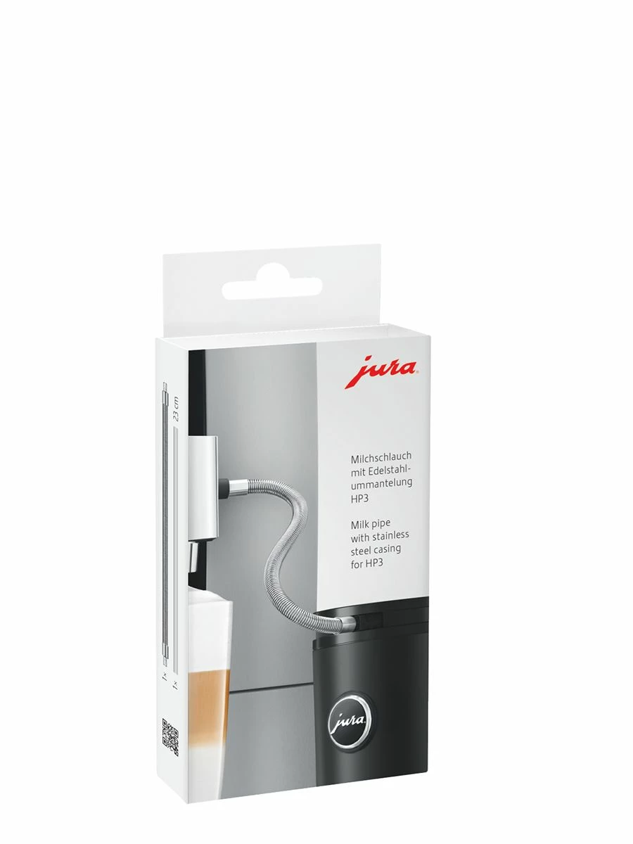 Encased in a high quality stainless steel coil spring. The milk pipe connects the milk container to the milk spout and makes the perfect finishing touch to the elegant design of the Jura machine.Â