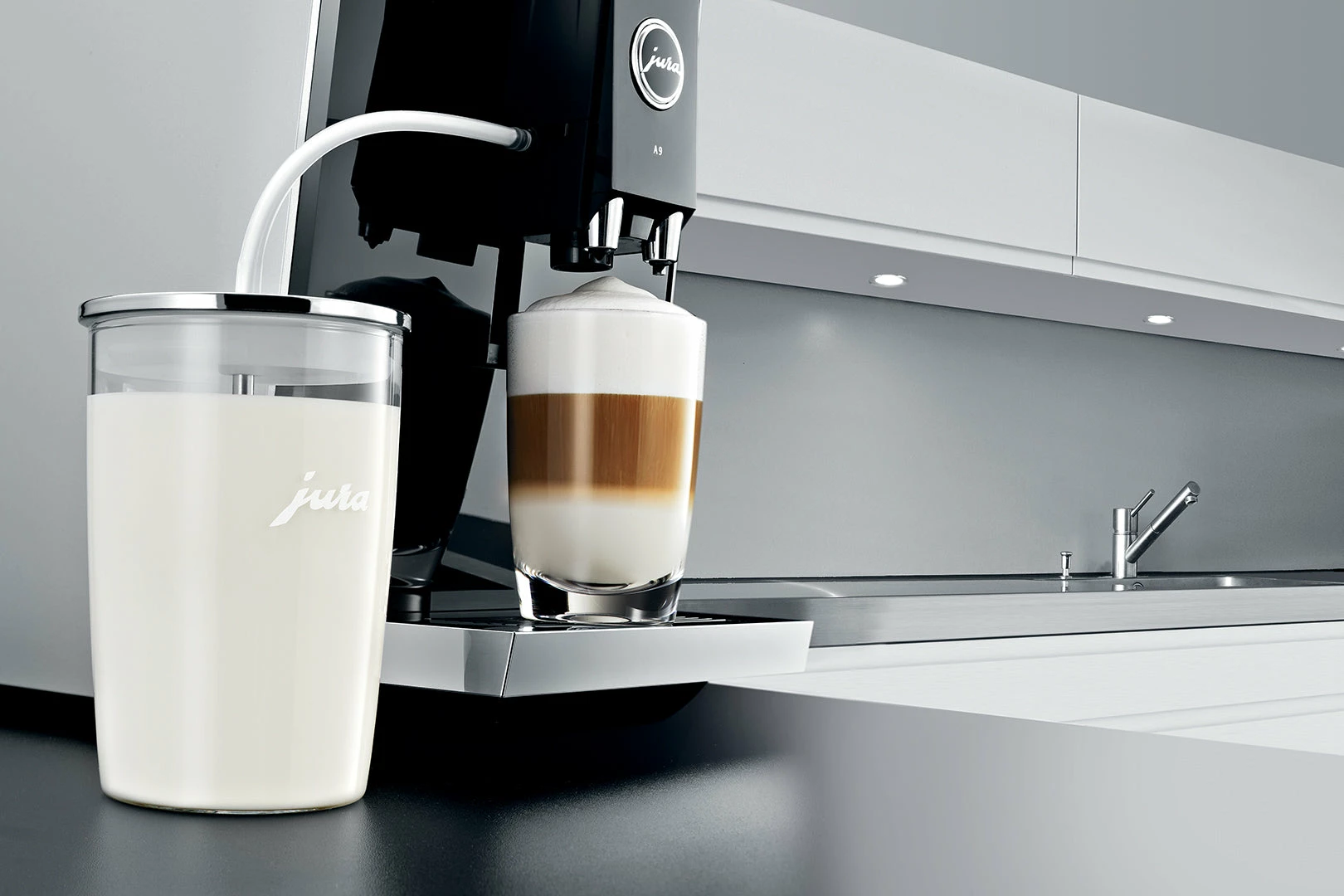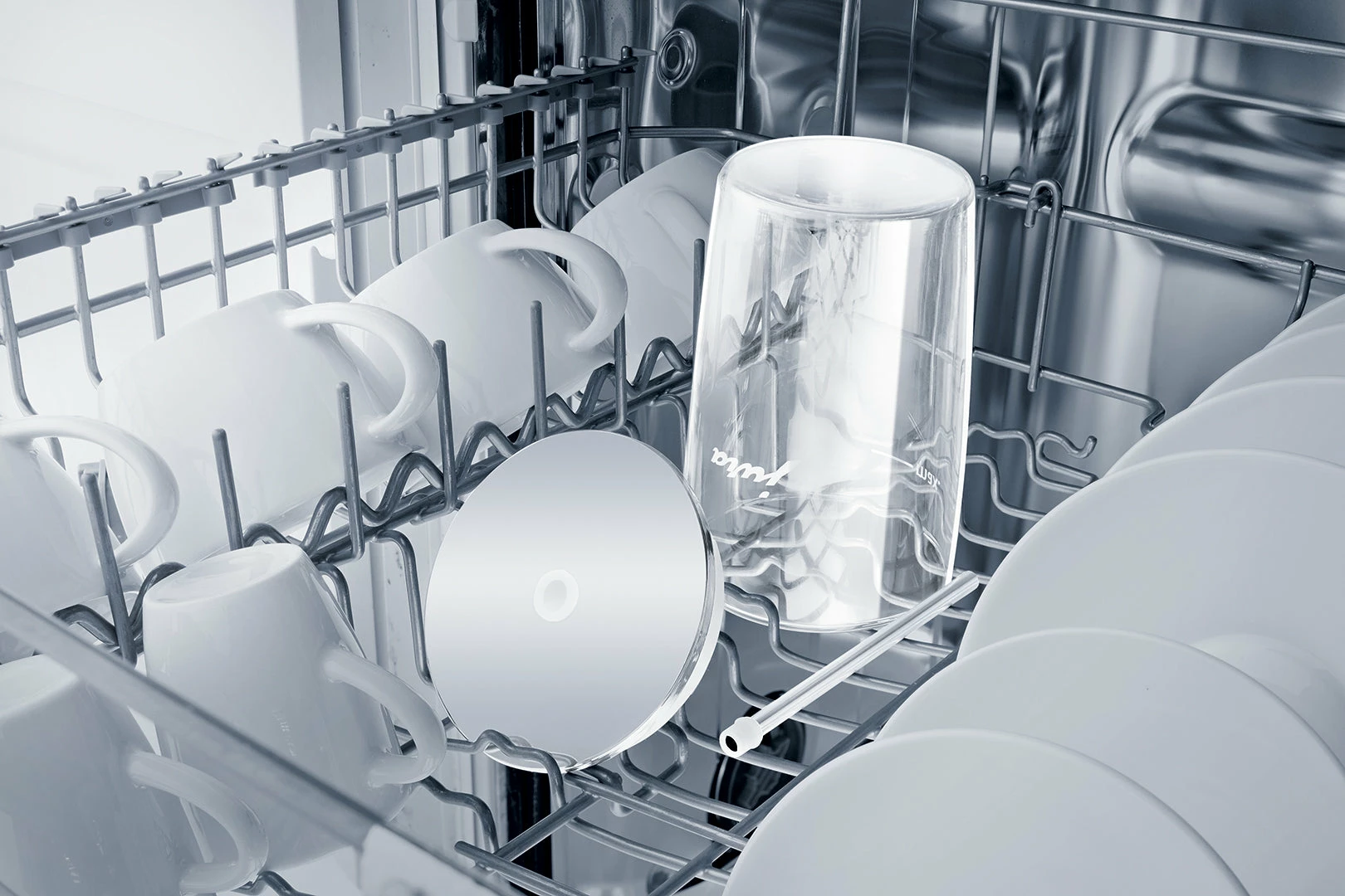 The milk pipe is connected to the cover and preparation can be started. The simple plug connections ensure that the route the milk follows is totally clean. The outer area of the milk pipe, which is often dirty, never comes into direct contact with the milk.