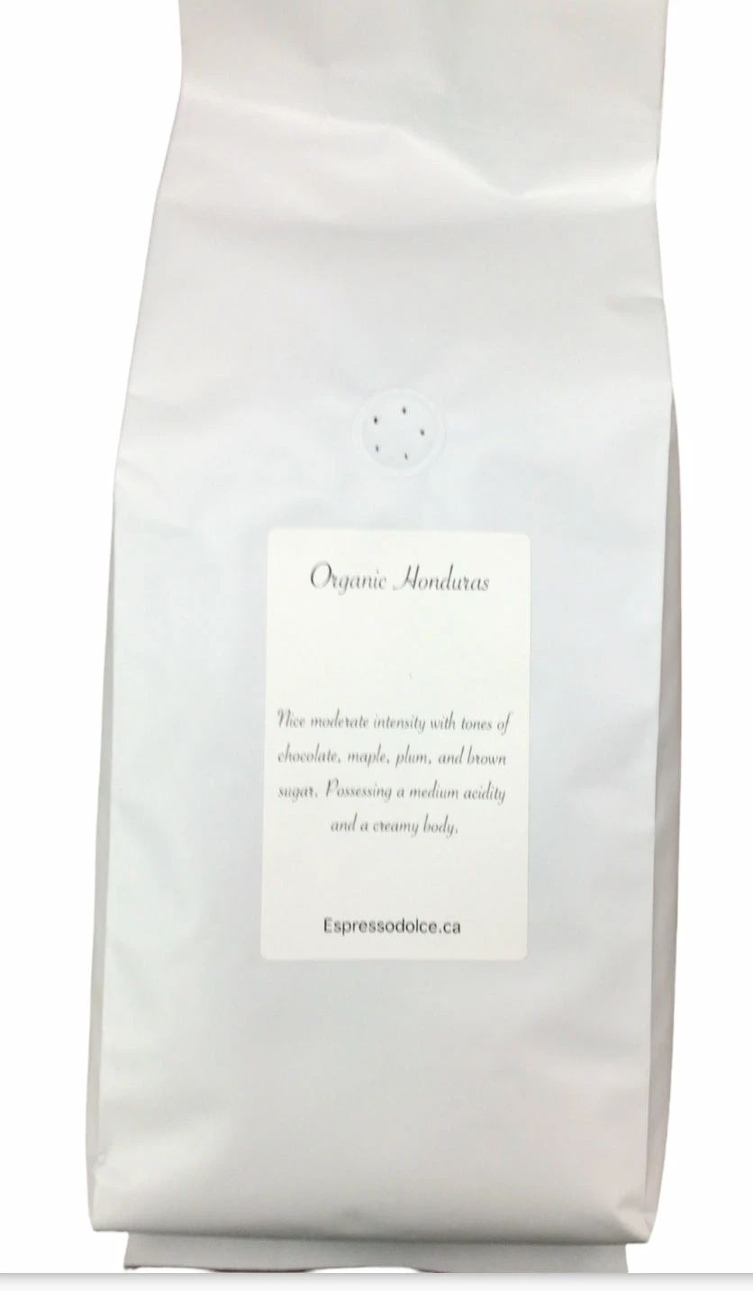 Espresso Dolce’s very own 2 lb bag of Honduras Beans. This single-origin bean has Maple and Plum tones for a warmer bodied roast. Organic and roasted locally weekly for optimal freshness.